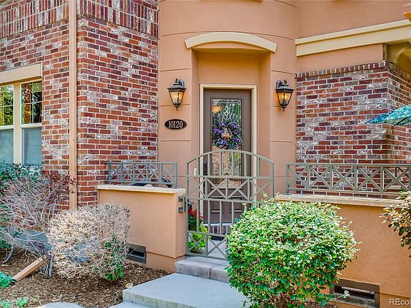 Spacious, sparkling and spectacular end unit. This beautiful unique row home is located among shops and restaurants and green space, walking distance to light rail. You are greeted by a large, lovely patio facing out to the Vallagio park area. As you enter the home, there is a main floor study and three-quarter bathroom-perfect work from home space or comfortable guest area. The home has elegant hand troweled wall texture, soaring ceilings, several built-in work from home areas, two outdoor spaces, a serenity room, living room, dining room, large kitchen with a huge island with solid granite and seating, ample pantry space , warm colors, upgraded window coverings, two-sided gas fireplace, tons of natural light through enormous windows, upstairs laundry area close to the bedrooms, huge master bathroom with extraordinary vanity space, closet organizers, built in speakers, central vacuum, wall safe. Live here for an incredibly convenient lock and leave lifestyle. Vallagio resident memberships available to the Inverness Golf Course include golf, swimming, fitness center and spa. Easy access to I25, Park Meadows mall. Award winning Cherry Creek Schools.