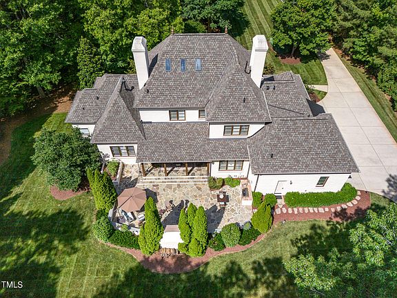 French Country Estate home on private 2+ acre lot in desirable Stonemoor - https://listings.nextdoorphotos.com/vd/145701096 Sophisticated living at its finest with extraordinary craftmanship and all brick exterior. Perfectly situated 400 feet off the street with beautifully landscaped yard and private-wooded backyard. Main floor boasts luxury Travertine floors, 10-foot ceilings, arched doorways and gorgeous millwork. The stunning foyer connects to a private study with built-ins and a formal dining room. Exquisite open concept from the family room into an expansive outdoor oasis with covered porch, large Pennsylvania bluestone patio, outdoor kitchen, built-in brick planter for herbs/small garden and wood burning fireplace which is ideal for entertaining. The gourmet kitchen includes a large granite island, 2 appliance garages, GE Monogram sub-zero refrigerator, double wall ovens w/convection, Bosch dishwasher and walk-in pantry. The adjoining butler's pantry has wine bottle storage and a wine fridge. The main floor primary suite has two walk-in closets and access to the covered porch. In addition, there is over 1,900 square feet of unfinished space throughout 3 floors to add on! The fully finished, daylight basement features the same beautiful finishes as the main floor which includes access from the outside, media room with surround sound, game room, flex space, flex room, exercise/dance studio room, wine room (storage for 250 bottles) and a bar area with ice maker, refrigerator, microwave and sink. This area also has a full bathroom, cedar closet, media closet for storage of components and additional unfinished space. Great area for entertaining with a 65'' TV and built-in cabinet wall! With 3 garage spaces with extra storage and sink in the 2-car garage, this home has it all. Systems include tankless water heater, intercom, security system, 2 central vacs, landscape lighting and whole yard irrigation system. Suround sound system in family room, dining room, primary owner's suite and covered porch. New roof 2022-Certainteed Grand Manor architectural shingles. Community amenities include pool, tennis and walking trails. From the meticulously designed interior features to the private, outdoor space, every detail of this home is perfection!