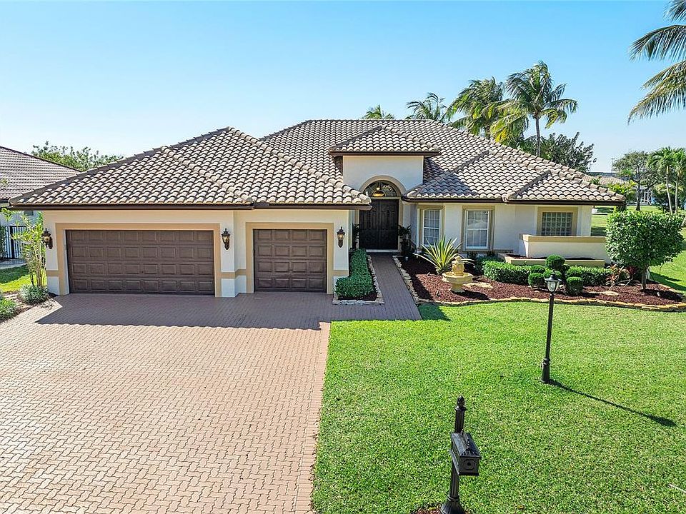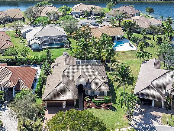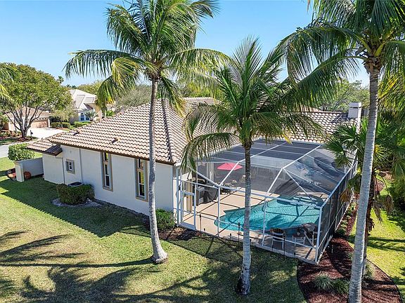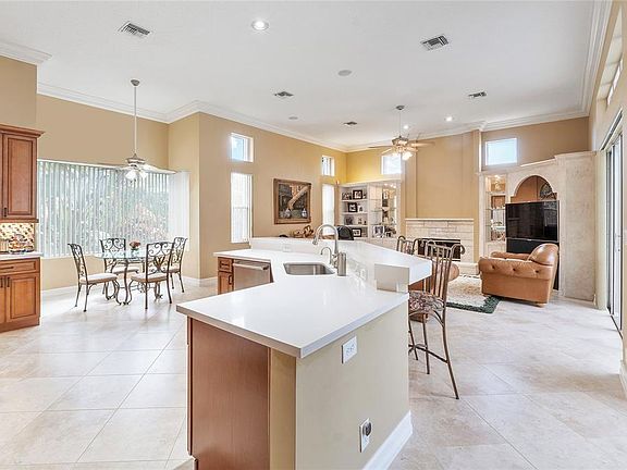 Spacious 5 bedroom, 3.5 bath one-story pool home w/ amazing water views & 3 car garage in The Landings! Beautifully landscaped home w/ large yard on cul-de-sac. Gourmet kitchen w/stainless steel appliances, upgraded quartz tops, insta-hot faucet & solid wood cabinets. 24” Marble look tile floors on diagonal in main areas & wood laminate floors in bedrooms. Huge master bedroom w/ sitting area. Open triple split floor plan is one of the largest in the community. Pool w/ spa & screen overlooking large lake w/ stunning sunsets. Roof replaced 2013. Includes: Volume ceilings, walk in closets w/ built-ins, wood burn fireplace, crown moulding, SONOS in & out surround sound, accordion shutters, built-in office. Low HOA fee includes gate security, tennis, pickle ball, basketball & playground!