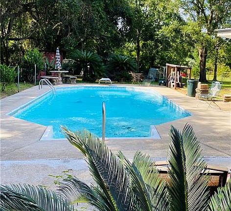 SO MUCH SQUARE FOOTAGE FOR THE PRICE !!!One and a half story in West Theodore area near Grand Bay!!! Three bedroom 2 bath, in-ground POOL with large front and back porches on almost an acre!!! Just needs you to add your personal touch! Large living room open to breakfast area and kitchen, separate formal dining/ office area! Master with private bath downstairs! Laundry and hallway bath convenient to additional bedroom and a large bedroom upstairs! HVAC is only 2 yrs old per Seller! Two car carport and separate storage building! Home is conveniently located near shopping and interstate accesses! Schedule your showing today!
