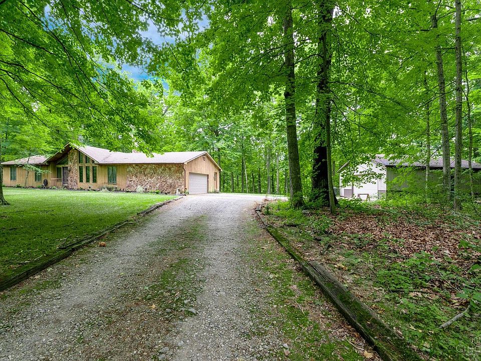 Amazing 1.8 acre park like wooded setting. 1st time this home has been offered for sale since 1980. Almost 2,000 sqft of easy ranch living with 1st floor laundry, cathedral ceilings, and pellet stove. Kitchen has been updated, super large unfinished lower level, and 30 X 30 pole barn. Home has several updates including newer roof and kitchen but still in need of updating. You wont be disappointed with this opportunity!