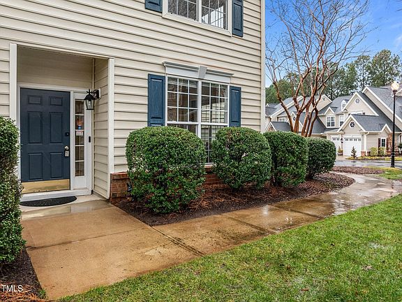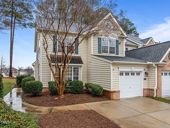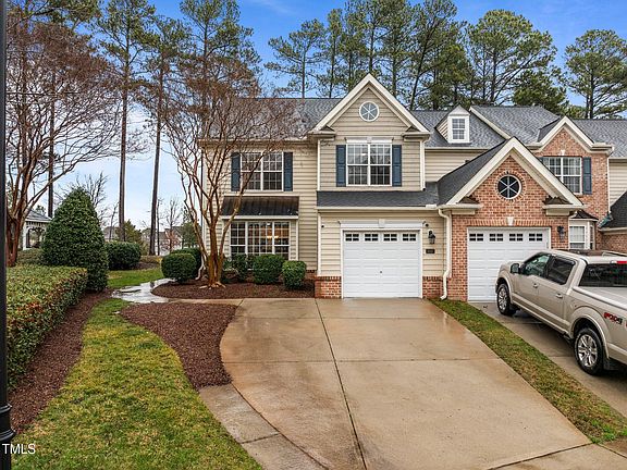 RARE OPPORTUNITY! This stunning 4-bedroom end-unit townhome is perfectly situated on the 12th fairway of the Arnold Palmer-designed golf course in the Village of Talamore at Brier Creek Country Club. Located on a quiet cul-de-sac street, this home offers breathtaking golf course views from multiple rooms. Inside, you'll find luxury upgrades throughout, including LVP flooring on the main level, brand-new carpeting and padding on the stairs and second floor, and fresh interior paint. The spacious main level features a formal dining room, front sitting room, and a cozy living room, providing ample space for entertaining. The beautifully appointed kitchen opens to a sunny breakfast area with a vaulted skylight, leading to a semi-private rear patio—the perfect spot to unwind and take in the scenic surroundings. Upstairs, the vaulted primary suite boasts stunning golf course views and an elegant ensuite bath complete with a jetted tub, separate shower, dual sinks, and a skylight. Several rooms throughout the home showcase incredible fairway views, including the spacious eat-in kitchen. Step outside to the rear patio or the nearby association gazebo for a peaceful retreat. The HOA replaced the roof in 2021, and Brier Creek Country Club requires a minimum social membership of $130/month, which includes access to the pool, country club dining, and exclusive club-sponsored social events. Additional golf and tennis memberships are available. Prime Location: Enjoy unparalleled convenience with Raleigh-Durham International Airport just a 10-minute drive away, making travel a breeze. The renowned Research Triangle Park (RTP) is approximately 15 minutes by car, offering proximity to a hub of innovation and employment opportunities. For shopping, dining, and entertainment, the Brier Creek Shopping Center is a mere 5-minute drive, providing a plethora of options to suit every taste. Don't miss this rare opportunity to own a golf course townhome in one of Raleigh's most sought-after communities!