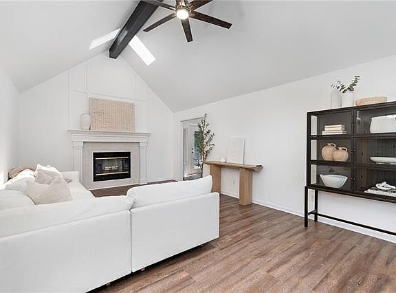 Beautiful house you will want to call home! Nestled in the hills of Parkville this updated home welcomes you. Open entryway with charming window seat perfect for cozying up to a good book. Living room with fireplace, impressive high ceilings w/beam, and natural light. Kitchen features SS appliances, white cabinetry, quartz countertop, pantry & eat-in space which flows onto the deck perfect for fall evenings. Formal dining room with darling light and tray ceiling. Large Primary Suite features luxurious bathroom, relaxing tree view and deck. Venture downstairs and find a spacious rec room with second fireplace, full bathroom, and two storage rooms. Deep garage with ample storage space. On a lush treed lot, backyard provides a peaceful retreat. Located in highly rated Park Hill School District, and near historical downtown Parkville, Berkley Riverfront, restaurants, shopping, baseball fields, golf course, and easy access to I29 and 435. The effortless blend of current updates & endless charm will win you over!