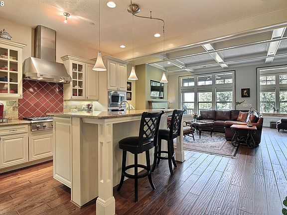 - KitchenAppliances: Gas Appliances, Disposal, Island, Built-in Oven, Granite, Stainless Steel Appliance(s), Dishwasher, Free-Standing Refrigerator, Microwave