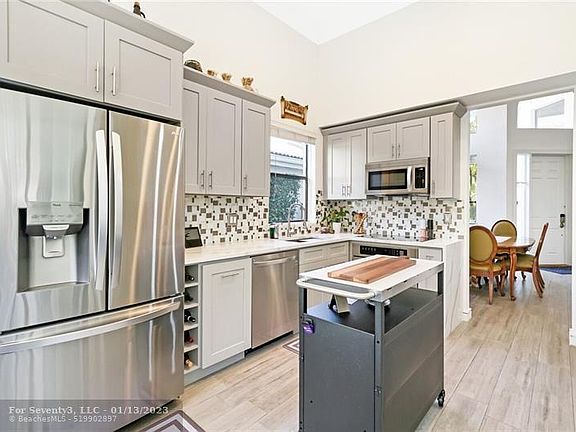 STONEBRIDGE: Boca Raton's luxury all ages, Gated Golf & Country Club Community! This 2 bedroom/one den-3 and half bath home boasts: Vaulted Ceilings, SOLAR panels, Tile flooring throughout, Remodeled OPEN eat in Kitchen, Quartz breakfast bar counters, NEW Stainless steel appliances all LG (2021), 2 ACs both NEWER (2020), spacious open concept floorplan, Roof (15 yrs old-2008), CABANA bath, Private Pool w/spa, covered patio with paddle fans, VERY PRIVATE, spacious in home laundry room, TWO Car garage, Walk in closets, finished closet shelving, remote operated Custom blinds can be yours. Membership Equity, restaurant facilities, pools, tennis, gyms, full spectrum entertainment calendar included with onsite Country club facilities. Motivated seller! Olympic Heights, great schools!