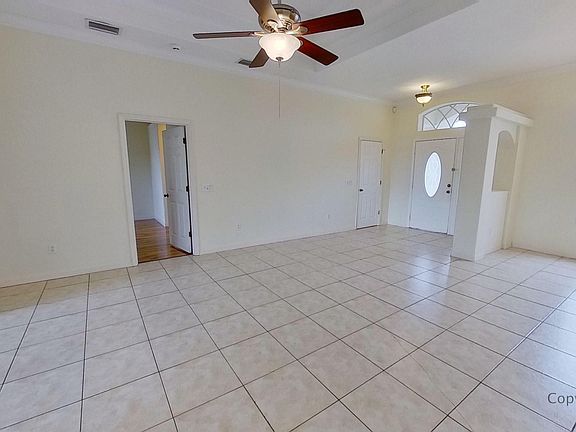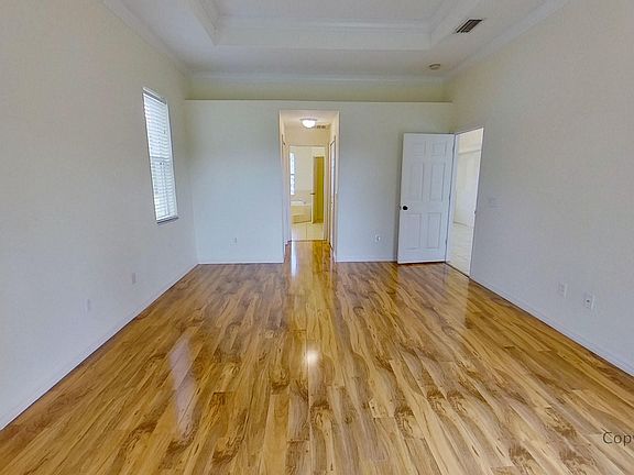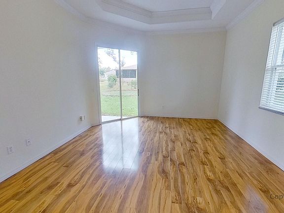 Active with contract. Nestled in the heart of Spring Hill this home is conveniently located near the Suncoast parkway and has plenty of local shopping. As you enter the house you will be greeted by lots of natural light, high ceilings, archways and an accented brick wall. The entire inside is freshly painted! The crown molding compliments the double tray ceilings in the living room which is spacious for large furniture and provides your family with easy access to the patio. The split floor plan gives privacy to the primary bedroom. In the primary bedroom enjoy huge double walk in closets as well as a bathroom on suite. The on suite comes with a built in vanity, a jetted tub, private toilet room and a snail shower. You can also access the patio from the primary bedroom. The kitchen has plenty of cabinet space and overlooks the breakfast nook. Enjoy a meal in your new nook or pull up some bar stools at the breakfast bar. The dining room is also placed off of the kitchen for those busy nights of entertaining. This home also has a laundry room with plenty of space and comes with a table for folding clothes and extra storage. On the other side of the home you will find the two other bedrooms, both with new floors and ample closet space. The guest bathroom located near the guest bedrooms for convenience. The guest bathroom also allows access to the patio where you can create your perfect dream pool. This home has plenty of parking with an over-sized garage and as a bonus there is room to turn around in the driveway for safety when leaving.
