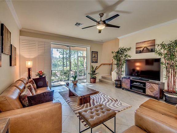 STUNNING Location! Best waterfront spot in Marbella! This is a true native Florida with a wooded and waterfront setting. Peaceful natural setting from your private screened lanai. Better than new, SOUTHERN exposure, END UNIT tucked in the back of Marbella away from city life! Spacious great room style townhome with THREE bedrooms, second floor laundry, two & a half baths & a ONE CAR GARAGE. Almost 2,000 square feet. Beautiful & spacious kitchen with granite counters, raised panel maple cabinets & stainless steel appliances. Roomy master suite has dual vanities/sinks, walk in shower & two walk in closets. Spacious lanai with storage. Extra features include: plantation shutters, crown molding, volume ceilings, hurricane shutters, keyless garage entry, new paint & plenty of storage! THIS PLACE IS A MUST SEE & IS IMMACULATE! Overflow parking across the street! Marbella Community is GATED & PET FRIENDLY community with RESORT STYLE POOL, FITNESS CENTER, THEATER, BILLIARDS, BOCCE COURT. Located off Six Mile Cypress Pkwy, just South of Colonial Blvd, Marbella is minutes from Shopping, Dining, International Airport, Schools, I-75 Interstate, Beaches. Low HOA Fees of $300 per month & NO CDD.