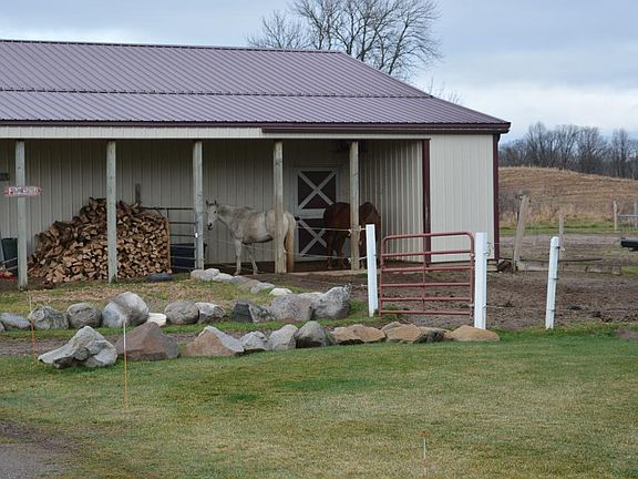 Amazing expansive traditional farmhouse blending comfort of yesteryear w today's elegance & convenience. Gourmet kit/granite & tile. Lg lower level w complete in-law w 2 BRs/kitch/bath/laundry/in-floor heat & sep entry. Stable w fencing. 8.75 acres of pasture/woods/pond. Sun rm w in floor heat. 30x42 sep gar/stable w 2 stalls/lean to/water. Lg kennel/shed. 4 stall gar. Steel siding. Irrig system. Heat pump. EZ access hwy. Exceptional opportunity- acreage, stable, fence, pasture, beautiful home!