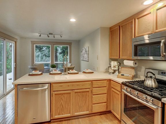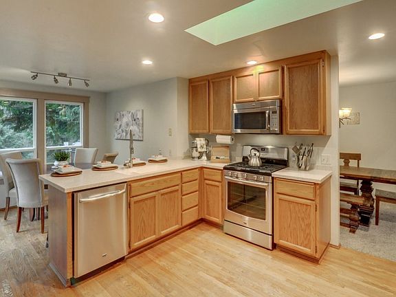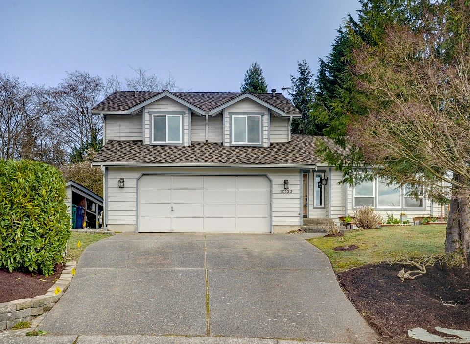 Welcome to this updated Mukilteo home on a cul-de-sac, backing up to a greenbelt for privacy. Open floor plan with plenty of natural light. Kitchen with Maytag stainless steel appliances and eating bar. Living room with a cozy wood fireplace. Updated family room with custom wainscoting, new flooring, and a pellet stove. Master bedroom with private bath and walk-in closet. New carpet and windows throughout. Outside new deck, rain barrel with a drip system, raised garden bed, and a Gravenstein apple tree. 8 year old roof with a 50 year warranty. Walking distance to schools, shopping, trails, and more.
