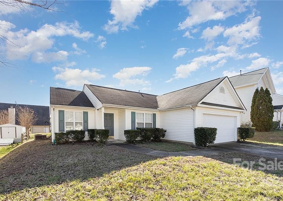 Fantastic Steele Creek area! Super cute, open 3 bedroom ranch with 2-car garage in a cul-de-sac. Calling all first-time homebuyers!! Enter the home and your living room is on the left. It is bright and open to the dining area which is right off the kitchen. Sliding glass door leads you to the back patio with a nice level yard. All 3 bedrooms are a good size. The primary bedroom with en-suite bathroom has dual vanities, garden bathtub and a separate shower. Large walk-in closet in primary bedroom as well. House has lots of closets for storage. Storage shed remains. Excellent location in Cedarbrook community. Minutes from Charlotte Premium Outlets, brand new restaurants, grocery stores and shopping. Close to I-485, NC-49, NC-160. Great location-easily get to uptown Charlotte, Lake Wylie and Fort Mill/Rock Hill SC area.