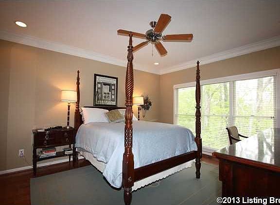 Beautifully maintained walk-out one and a half story with 5 bedrooms and 4 full baths, backing up to a wooded area. Exceptional first floor features open floor plan, hardwood floors, double trey ceiling, crown molding, and full length windows for an abundance of light. The spacious living room has a double sided fireplace that is viewed from the family room as well. Current owners are using the first floor family room as a formal dining room and cozy sitting area around the fireplace. The first