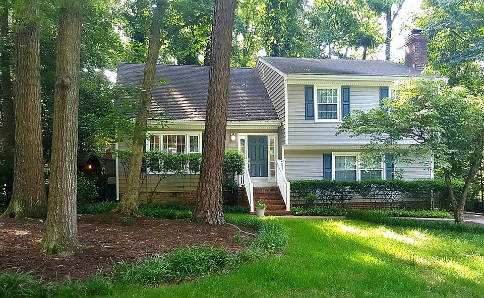Move in ready home on a quiet cul-de-sac located in the much sought after Raintree Subdivision! This newly renovated 5 bedroom/2.5 bath split level has 4 floors. The first floor features a laundry room, half bath, 5th bedroom/office, inviting family room with wood burning fireplace, side entry, and shelved closet for storage. Second floor features hardwood floors throughout. Here you will find the main entry into a bright foyer with coat closet. Open floor plan with living room, dining room and kitchen. The kitchen has all stainless steel appliances, pantry, and new counter tops. The Dining room has sliding doors that lead to a spacious deck, as well as a pet door to a fenced yard. The third floor has the master bedroom with full bath featuring walk-in shower. There are 2 additional bedrooms that share the other full bath with tub. Third floor hall has a linen closet and access to overhead attic. Fourth floor features a spacious bedroom and access to walk-in attic. Additional attic storage is accessed through the closet. All rooms are newly painted 2020. New flooring in bathrooms August 2020 and new carpets in all bedrooms and family room February 2021. New energy efficient HVAC August 2020 and new energy efficient water heater February 2021. Dimensional shingle roof, vinyl siding, and maintenance free windows in 2006. Oversized lot with paved driveway and fenced back yard. Large deck where mature trees and ivy create a park-like setting. *Outside pics are from this past Spring. Short walk to Deep Run Park and Godwin High School. Raintree Subdivision has 105 acres of community area, with several miles of walking trails, an 8 acre lake, and a swim & racquet club. Close to Short Pump area and I-64. Excellent schools! For Sale By Owner. Due to COVID, preapproved buyers only please, by appointment. Contact the owners directly at 804.476.2163, you can call or text.