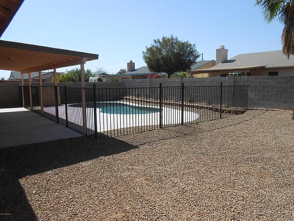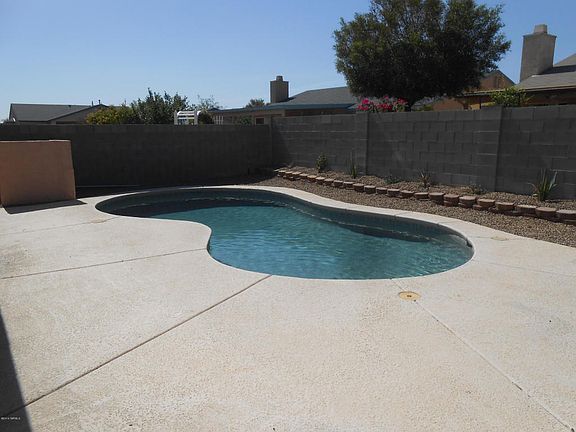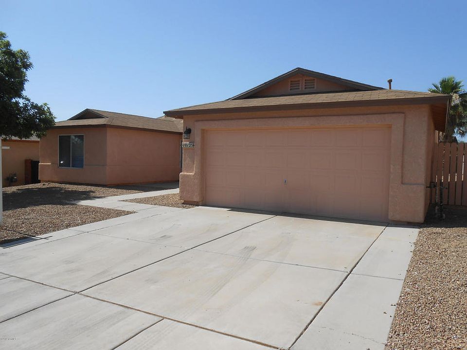 Gorgeous Rita Ranch home has been remodeled to stunning perfection! New 2 tone interior paint new 20'' tile with tile base new carpet new brushed nickel light fixtures ceiling fans plumbing fixtures and door hardware new window coverings. Beautiful kitchen with rich toned cabinetry new granite counters with full decorative travertine back splash new plumbing fixtures and new stainless steel appliances including smooth top electric range over range microwave and dishwasher. Kitchen opens to large great room perfect for entertaining. Bathrooms have been upgraded with granite counters new mirrors and new plumbing fixtures. Step outside to the generous sized back yard with sparkling pool!Landscaped and ready for you to add your personal touches.Not a short sale or REO. Agent/Owner
