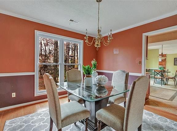 Sparkling 4 bedroom colonial in Raintree situated on a private lot that backs up to natural area. Large living room with formal dining room and open family room with wood-burning fireplace. Updated eat-in kitchen with granite counters, custom cabinets with soft-closing drawers, stainless steel appliances including gas cooking. Large master suite with easy attic access. 3 additional bedrooms. Tankless water heater, whole house surge suppressor, whole house humidifier. Large private rear yard-nearly half acre, with fire pit, storage shed and second shed with electricity. Easy access to 64/288/295