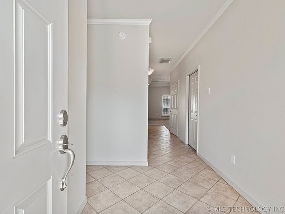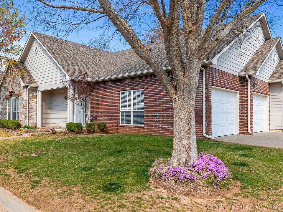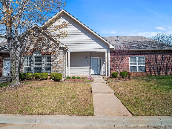 Rare find! Gated South Tulsa patio home community. Property boasts 2 bedrooms plus large living room and office/or den that could be a 3rd bedroom, as well as 2.5 bath. One of the only homes in the neighborhood with a long driveway! Garage is heated and cooled, so you will never have to get into your car hot/cold again! Garage also has a ramp going into the house. Kitchen has nice sized pantry, granite counters, stainless appliances and overlooks the large dining area and enclosed patio. All appliances stay! The master bedroom overlooks the walking paths, has a full bath with double sinks, separate water closet and lots of storage. The second bedroom, nice sized, has an attached full bathroom as well. Both bedrooms feature walk-in closets. The living area is very nice sized and features a gas, corner fireplace. Plenty of room to entertain! The den/office is a great size and has 2 large, walk-in closets. Interior was just painted and dishwasher replaced. Clubhouse is just 2 doors down and features a meeting area, kitchen, workout room and bathrooms. Call today to check out this great 55+ community!