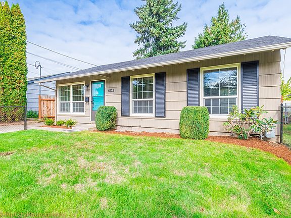 This Lents ranch would make a fantastic starter home or investment property. Updated & well maintained, gorgeous hardwood floors, remodeled kitchen with shaker cabinets & tile backsplash, separate utility rm, updated bath, light & spacious living room, dining room with slider to patio & fabulous fenced/landscaped backyard, new int & ext paint. Forced air gas furnace & Central A/C. Convenient location just blocks to Lents town center. [Home Energy Score = 4. HES Report at https://rpt.greenbuildingregistry.com/hes/OR10085742]