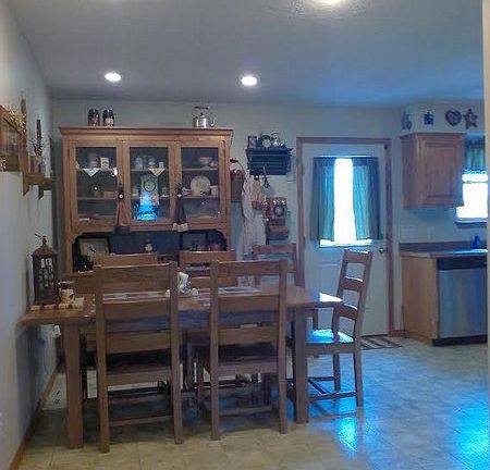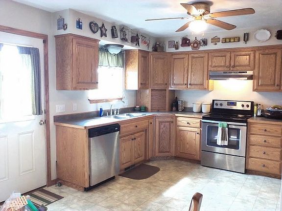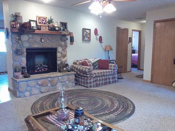 Live in a cabin style home in the country only minutes to schools and shopping. This custom built, all electric home has large walk-in closets in each bedroom. Electric log fireplace adds additional heat option in the winter. Kitchen has plenty of cabinet space with 4 Lazy Susan's, a roll top corner cabinet & under cabinet lighting. Oversized garage has staircase with landing to attic storage area. Master bedroom closet reinforced to serve as safety shelter. New garage door openers & remotes installed in March. New oven updated in 2015, new hot water heater, garbage disposal, electrical additions & sump pump added since 2013. The covered front porch is a great place to enjoy coffee in the morning or iced tea in the evening. The patio overlooks the open back yard and wooden play set. Plenty of mature trees and shrubs for summer shade and privacy.