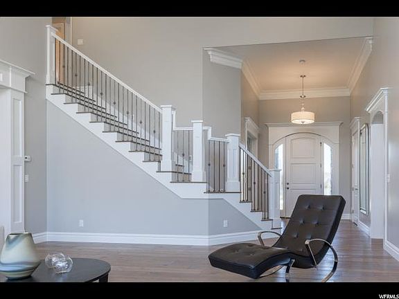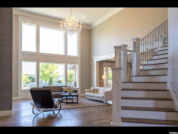High-quality, custom home with incredible attention to detail. Two-story great room with large, crystal chandelier, custom fireplace and mantle with beautiful mirror. Adjoining kitchen with oversized island featuring bar seating area and separate sink. Stainless steel appliances including double wall ovens, induction stove top and sleek range hood. White cabinetry with transom doors and lighting, big pantry and recessed and pendant lighting. Master bedroom suite with vaulted ceilings and bay window for a bright and spacious feel. Master bathroom features dual vanities, oversized tub, separate shower and huge walk-in closet. Luxurious, daylight basement with nine foot ceilings, full kitchen and open floor plan. Luscious, full landscaping with rock retaining wall, fountain water features, fire pit with stone benches, custom outdoor fireplace, large patios and covered deck - perfect for entertaining. Too many upgrades to mention - this property is in pristine condition and must be seen to be believed!