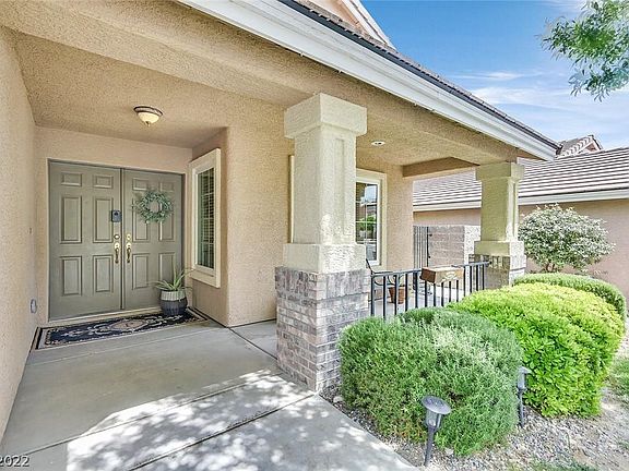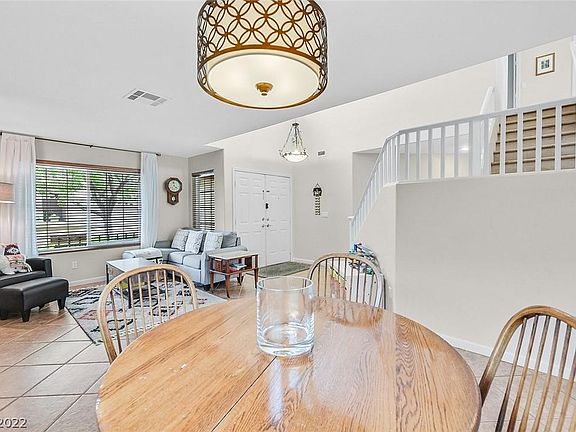 Gorgeous home*Quaint front porch overlooking grassy front yard & mature shade tree*double door entry leads to formal living & dining rms*separate family rm w/soaring vaulted ceilings, stack stone fireplace & wooden mantle*Lovely kitchen w/stainless steel appliances, new microwave, glass front deco cabs, granite counters & modular island*tile t/o downstairs*ceiling fans*1 bedroom downstairs*bath down w/newly upgraded walk-in shower*new very neutral luxury vinyl floors on stairs & t/o upstairs*Large primary suite w/vaulted ceilings, newly upgraded primary bath w/separate tub & shower w/seamless glass, double vanity & upgraded lighting*Balcony off primary suite w/beautiful mountain views*Great sized secondary bedrooms*Hall bath w/new vanity top, sinks, faucets & lighting*French door to lrg back yard, covered patio, sparkling pool, solar heated, removable fence, lemon & key lime trees*newer HVAC, New water heater*ALL NEW WINDOWS installed in 2020*In the heart of Summerlin*THIS IS A BEAUTY!