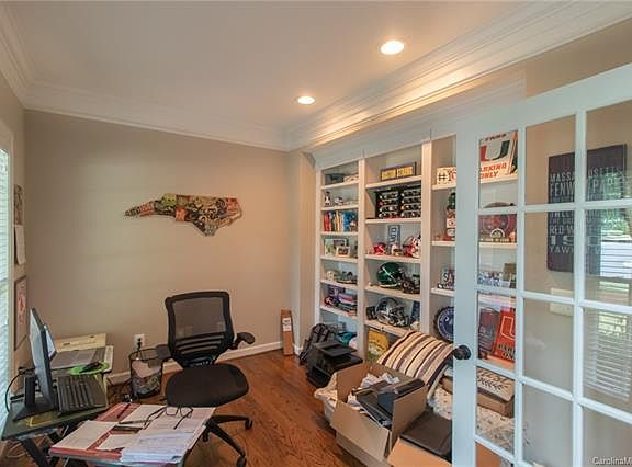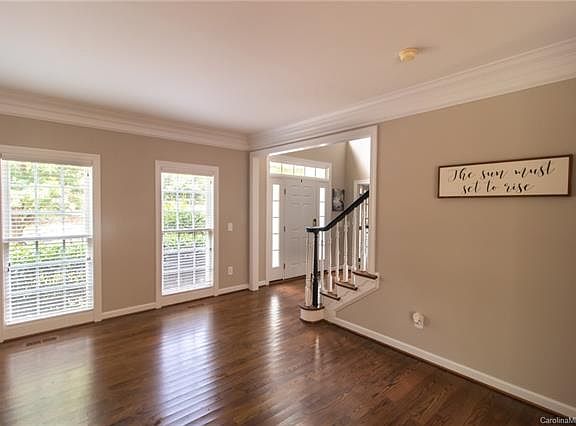Impressive from the front door, soaring two story foyer, french doors to office with build in shelves. Dark hardwood floors, granite counter tops, SS appliances, washer/dryer and refrigerator remain. Large Master with trey ceilings, bonus room. Hardwood flooring added and refinished in 2016, many fixtures updated. front and back stairs. All located in the Ballantyne Area with shopping and dining at it's finest.