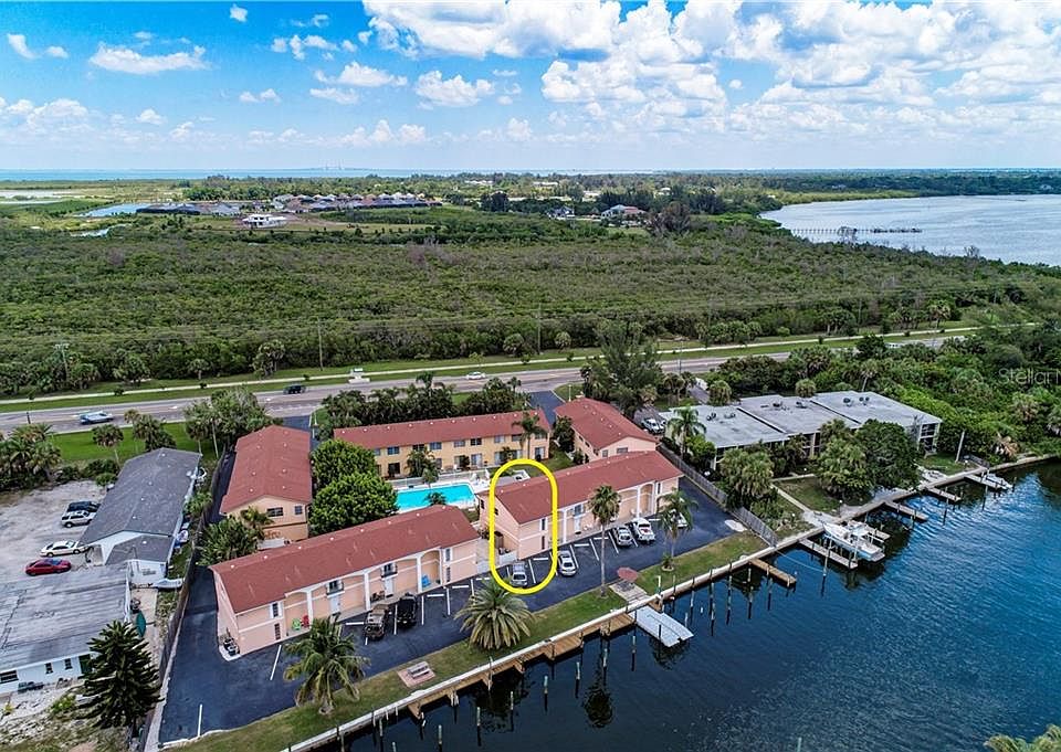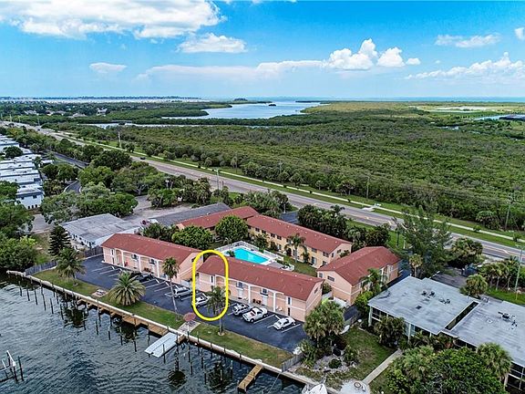 Spectacular two bedroom, two and a half bath, waterfront townhome located less than two miles to the beach. Walk out to your boat slip, jump on your boat and head out to the gorgeous bay waters. The high impact sliding glass doors lead you to the sparkling heated pool . This beautifully designed floorplan has two bedroom suites on the second floor, each with their own updated bathrooms. Downstairs you can enjoy your spacious living and dining rooms complete with an electric fireplace. Sit at the kitchen bar and enjoy breakfast while looking out at the courtyard and pool. This is great place to spend your winter or live year round! A must see!