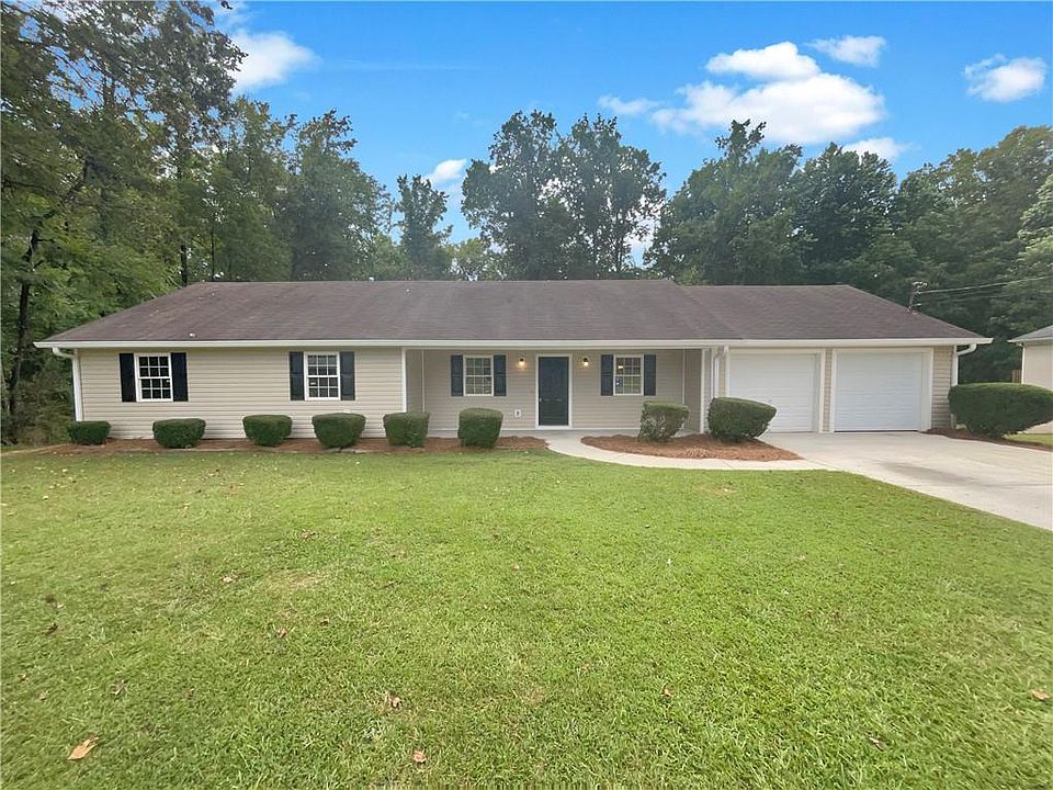Charming 3-bedroom, 2-bathroom ranch located at 10125 S Dinah Cir in Covington! This cozy home features a welcoming covered front porch, perfect for enjoying the peaceful surroundings. Inside, the kitchen boasts white cabinets, a stylish tiled backsplash, and a separate dining room ideal for entertaining. The spacious family room is highlighted by a beautiful stone fireplace, ideal for cozy evenings. The primary suite offers an ensuite bath for your own private retreat. Two additional bedrooms offer flexibility for guests, a home office, or more. The home also features vinyl siding for low maintenance. Unwind on the relaxing pa o overlooking the expansive .65-acre lot. Enjoy country living just 5 minutes from I-20, providing convenience without sacrificing tranquility!