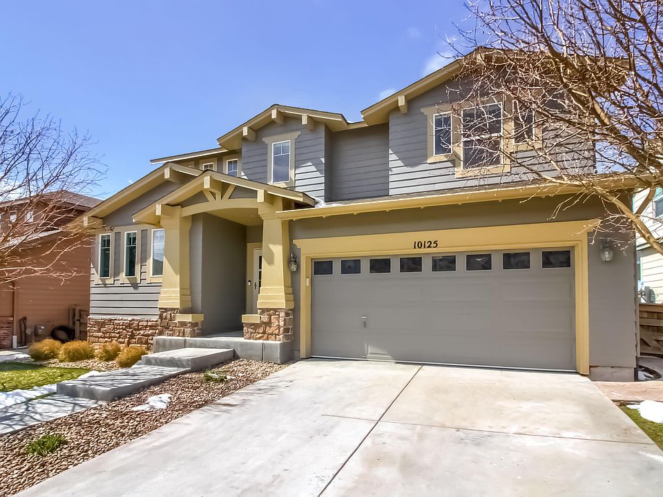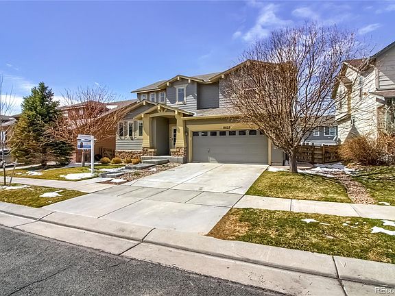 This beautiful 3 bedroom, 2.5 bath home is flooded with natural light. The kitchen features granite countertops w/oversized island, new garbage disposal, stainless steel sink and faucet. The living room is pre wired for surround sound and has a cozy gas fire place. The sliding glass door in the dining room leads to a spacious backyard with a large patio making this the perfect space for entertaining. Upstairs you will find your master suite including a 5 piece bathroom and large walk in closet. 2 additional bedrooms located on this floor share a full bathroom. (Granite counter tops and new undermount sinks/faucets to be installed in master/full bathrooms prior to closing) This home is located jut 2 blocks away from the brand new Southlawn pool set to open this summer. Reunion is lifestyle community with two pools, a large rec center, lakefront coffee house, multitude of parks and open space plus numerous community activities. Close to DIA, Hwy 85, E470 and I76. Welcome Home!