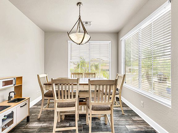 Interior Features: Open and airy floor plan with high ceilings and recessed lighting throughout. Expansive living room with stylish wood-look tile flooring, a ceiling fan, and large windows that flood the space with natural light. Gourmet kitchen boasting granite countertops, stainless steel appliances, and a large island with breakfast bar seating. Adjoining dining area perfect for family meals and entertaining guests.