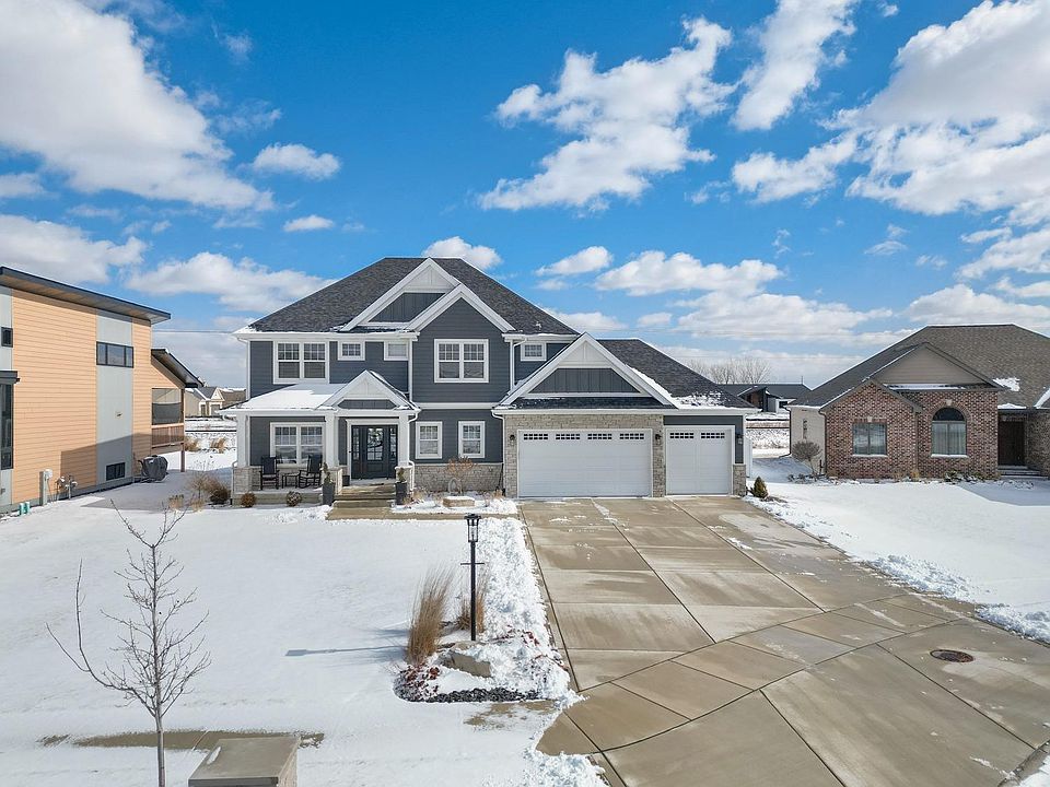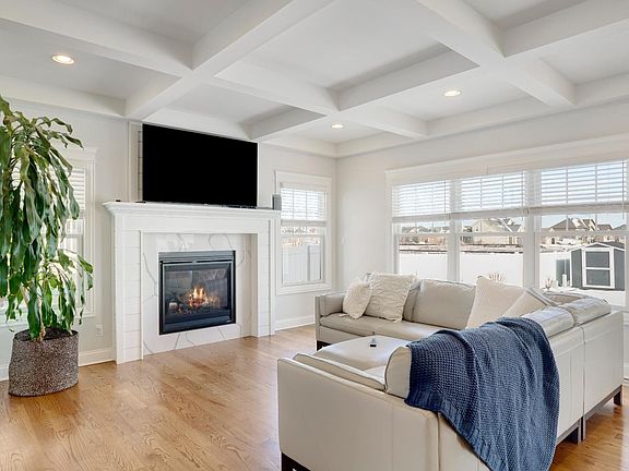 Don't miss the opportunity to own this STUNNING, three year old home in West Lakes. This open concept two story welcomes you with beautiful wood flooring and ceiling detail throughout the home.The open concept kitchen and great room is perfect for gatherings and everyday living.Main level office, mudroom and walk-in pantry. Upstairs you will find the owner's suite and ensuite featuring his/her vanities, custom walk-in shower and free-standing tub. Bedroom 2 offers a private 3/4 bath. Bedroom 3 & 4 connect with a Jack- n-Jill bathroom. The upstairs laundry room is the perfect added convenience. The basement has been finished with an additional bedroom, bathroom, and a rec room space featuring an electric fireplace. Do you like outdoor entertaining? The back yard has a covered patio with an extended patio area. The heated garage also has a rear overhead garage door that opens to the patio area. Landscaped with irrigation front/back and landscape lighting.