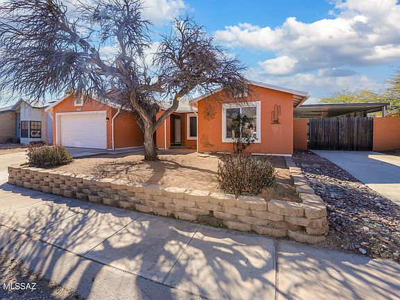 Have you been waiting for an affordable 4br/2ba home on Tucson's east side? Wait no longer! Located in the Rancho Del Rincon subdivision, this gem is ready for a new owner and move in ready. Inside features an open floor plan with tile throughout the kitchen, living room, and most high traffic areas. Fridge, washer, and dryer all included to minimize out of pocket expenses. Keep your monthly electric down with your solar system that will be OWNED not leased. NO HOA so bring your toys with plenty of parking and storage space from front to back. Backyard has over 50ft of covered patio, plus an entire side yard covered perfect for boat or camper storage, with plenty of room left over to work on projects. Large workshop, and storage shed also included for keeping your items organized a nd out of the elements. Come see for yourself!