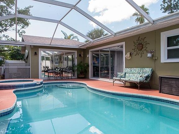 You Will LOVE This Beautifully Maintained 3 bedroom, 2 bathroom, 1 car garage, Swimming Pool Home on Paradise Island in Treasure Island!! Paradise Island is a close-knit community popular for it''s well kept homes, Treasure Bay Public Golf and Tennis Club, and it''s close proximity to beaches, shopping, restaurants, and more!! Great Curb Appeal with gorgeous Palm Trees, green grass, covered entryway, and tons of off-street parking! Entering this Home you are immediately impressed with the Open Floor Plan and Polished Terrazzo Flooring throughout! Floorplan includes a split bedroom plan, large open living/kitchen/dining area and a den/office with a charming wood beamed ceiling. Large Master bedroom with a Vaulted Ceiling and access to the bird-cage/heated pool and spa. The kitchen features granite tile counters, vintage cabinetry, glass tile backsplash, breakfast bar, and stainless steel refrigerator. Both Bathrooms are Super Nice with charming updates! Oversized 1 car garage. Features include Updated Windows, New A/C system (2011), Newer Roof (2014), Interior Paint, and Plantation Shutters. Great Outdoor space with 2 Large Planter Boxes, Utility Shed, privacy fencing, shade trees, and a swimming pool with a spill over spa. Outstanding Value For A Squeaky Clean 3 bedroom, 2 Bathroom, Concrete Block Pool Home on Paradise Island!!