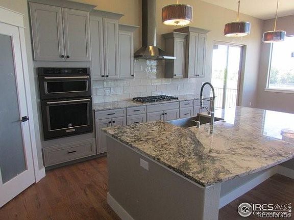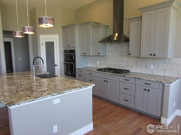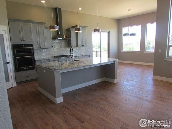 Stylish New Custom Ranch on .28 Acres w/ spectacular mountain views in lovely St. Vrain Ranch includes 3 Bdrms. 3 baths, hardwood floors, main floor study, gas fpl., gourmet kitchen w/ granite counters, custom cabinets & upgraded SS appls., Mst. suite w/ 5-piece bath & custom walk-in shower, 11 Foot ceilings on main level, quality finishes throughout, full unfinished walkout basement, custom lighting, $2500 refrig. allowance & more. Attached oversized 3-car garage. Colorado Beauty!