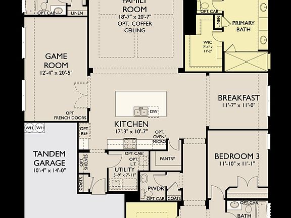 This spacious one-story home offers four bedrooms and three and a half baths with a thoughtful layout designed for modern living. The open family room features a coffered ceiling and plenty of natural light, flowing seamlessly into the eat-in kitchen with an island, built-in appliances, walk-in pantry, and pendant lighting. A separate dining room and study with doors provide versatile spaces for work or entertaining, while a game room adds extra space for family fun. The primary suite includes a luxurious bathroom with a mud-set oversized shower, double vanities, and a generous walk-in closet. Additional highlights include a three-car garage, covered patio, privacy fence, sprinkler system, in-wall pest control, 8-foot doors throughout, and pre-plumbing for a water softener. With no back neighbors, this home offers privacy along with comfort and functionality. This home features design selections thoughtfully curated by our professional studio team. Each finish, from flooring and cabinetry to countertops and special touches, is chosen with care to create a cohesive and beautifully balanced look. Guided by timeless design principles and inspired by modern lifestyles, the result is a home that is both stylish and welcoming from the moment you step inside. This home is located in Saddlebrook Ranch, a master-planned community in the charming city of Schertz-named one of CNN/Money's top small towns. Enjoy easy access to I-35, premier shopping, dining, and Randolph Air Force Base. Planned amenities include a sparkling pool and playground, perfect for family fun. With the highly regarded Schertz-Cibolo-Universal City School District nearby, Saddlebrook Ranch offers the ideal blend of community, convenience, and small-town charm