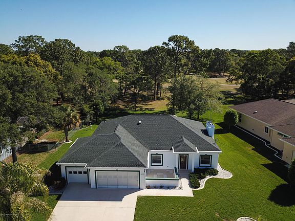 Welcome Home! Immaculate 3 bedroom, 2 bath, 3 car over-sized garage home located on the 15th fairway of Oak Hills Golf Course. This home boasts open concept living, double paned windows, spacious kitchen featuring granite countertops, custom cabinetry, wood burning fireplace, master suite with granite countertops and tiled walk in shower. Guest bath features granite vanity with tiled tub and bedroom 2 features walk in closet. 3rd car garage is over-sized with workshop area for the home enthusiast. Beautiful tranquil outdoor patio setting overlooking golf course with landscape curbing complete this well maintained truly move in ready home.Close to all amenities including beaches, attractions, restaurants, medical facilities and the Suncoast Parkway.