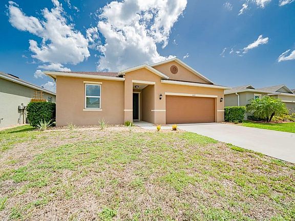 QUIET COMMUNITY LIVING AT A GREAT PRICE!! FRESH PAINT AND FLOORING!!! Enjoy living in your own low maintenance 2016 built home in beautiful Creekside. This 4-bedroom 2-bath 2 car garage home covers more than just the basics Energy efficient windows, HVAC, and appliances will help to keep utility bills low. The open floor plan offers great spaces to enjoy friends and family, while giving you plenty of privacy in your own master suite. Ahh, the master suite... with a beautiful bathroom, large walk-in closet, plenty of room for a king-sized bed, and a view of the private back yard and lake. Three guest rooms offer plenty of space for friends and family as well as the flexibility to suit your needs. In the kitchen you will find newer appliances, solid wood cabinets, and a large island with plenty of space to cook your favorite meal. All of this in an amazing single entrance community with multiple lakes, picnic areas, and playgrounds. With all of this, all you have to do is imagine yourself sipping coffee on the lanai and planning a trip to a local beach for a day in the sun! MOVE IN TODAY AND BECOME PART OF THE CREEKSIDE COMMUNITY!!