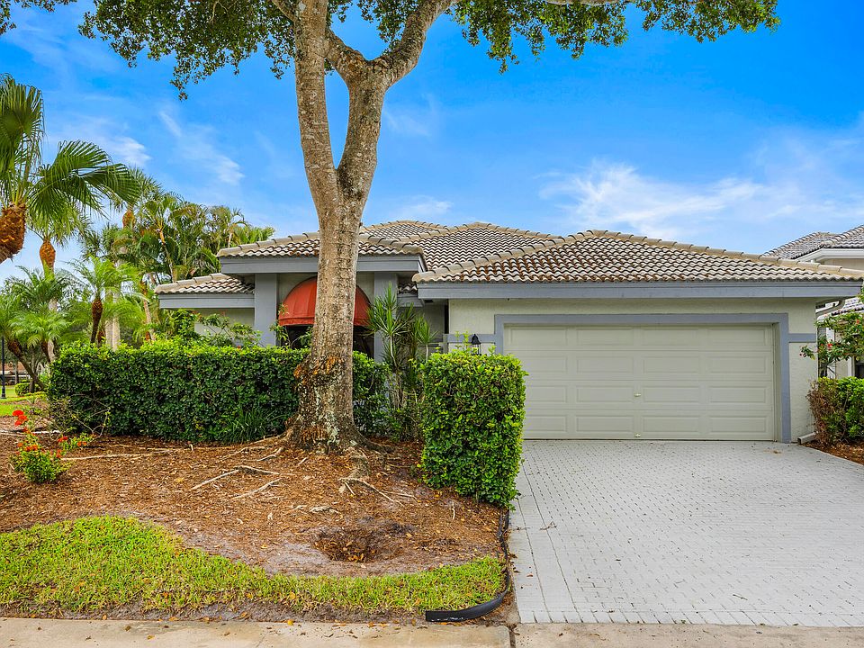 Create your dream home in paradise! This 2-bed plus office (convertible third bedroom), 2.5 bath home sits on an oversized lot with stunning golf views of Stonebridge's signature first hole and serene lake views from the side. A rare opportunity to renovate and make it your own. Price to sell by a motivated seller. Enjoy the country club lifestyle in Stonebridge - featuring golf, tennis, dining and more. Mandatory membership required.