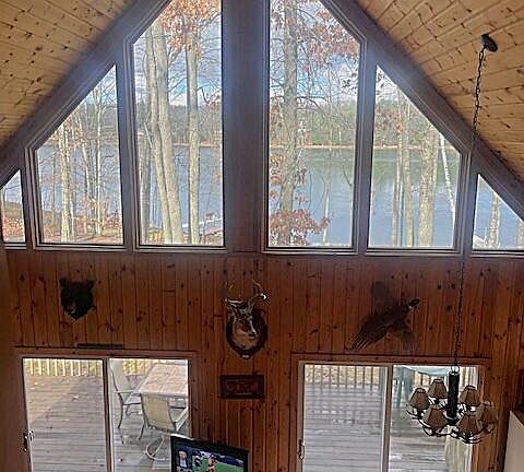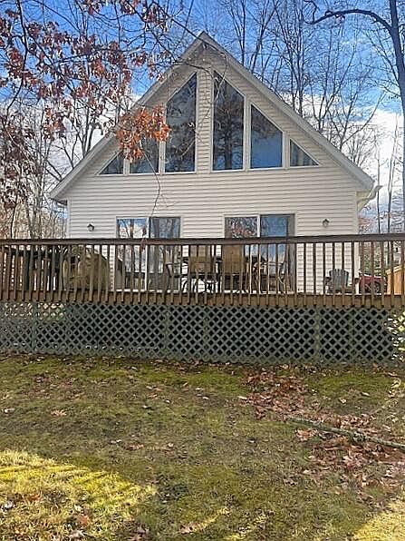 Check out this wonderful year round cabin. Wooded setting on a private lake association. This is a no wake lake with tranquil setting. The interior boasts Tongue and Groove Knotty Pine. 3 Bedrooms, with Plenty Of Closets. Full bath, with Laundry Area. Double Pane Widows that look out onto the water. Large Deck great for outdoor enjoyment and cooking. Dock included. This home is turnkey. All you need to add is your personal touches.