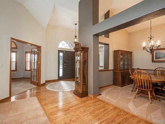 Incredible opportunity in Todd Creek Estates! This ranch style home with a walkout basement has an incredible amount of finished square footage in a coveted gated community and offers everything you are looking for. This home has been immaculately maintained and the sellers have done all the work for you including building a massive outbuilding in 2020 with RV parking, paved driveway, heated workshop and an overhang for hay storage. The 2 stall stable is fenced off to provide a pasture for up to 2 horses. The main lawn has been impeccably maintained and designed with a koi pond, orchard, lush grass and xeriscape areas. The curb appeal of this home speaks for itself! Once you step inside this gorgeous ranch home you are welcomed by a grand entry peeking into the formal dining area and formal living area with soaring ceilings and a recently updated double-sided fireplace with marble finishes. A private office resides off the main entry and provides plenty of space to work from home. As you enter the large and very comfortable family room you are adjacent to the kitchen and kitchen nook for all your entertainment needs. The kitchen is perfect for a chef of every type with a large island, lots of cabinets, coffee bar, gas range, pantry and access to the expansive deck with great views and hot tub. The primary bedroom is sun splashed with large windows, a five-piece bathroom, towel warmer and walk in closet. Finishing off the main floor is an ensuite secondary bedroom with hardwood floors and a full bath. As you descend the stairs to the basement one is welcomed by an entertainer's dream! Home theater, wine closet, full wet bar, area for a pool table, along with two additional bedrooms and a full bathroom. One of the bedrooms is currently fully equipped as a home gym with plenty of space. Walkout on to the covered patio to the built-in grill and lush outdoor space and an area for a fire pit. This home is all encompassing on it 1.67 acres and ready for you to enjoy!