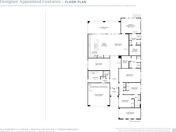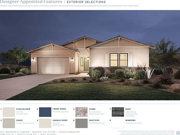 This home is single-level living at its finest. A welcoming entrance offers views of an open-concept floor plan and luxurious finishes. The stunning kitchen boasts upgraded countertops, beautiful cabinets with 3 crown molding, a large center island, and walk-in pantry. The casual dining area is adjacent to the kitchen and provides a convenient and intimate setting. . The great room is the perfect setting for relaxation with its open-concept floor plan and ample natural light from the 12 multi-panel pocket door. A versatile flex room located off the foyer provides additional space for entertaining. The primary suite is in the back of the home for a more intimate, private setting. The luxury primary bathroom includes a walk-in shower, dual-sink vanity, linen storage, private water closet, and large walk-in closet. The 12 multi-panel pocket door leads to a spacious covered patio, ideal for outdoor living, dining, and entertaining. Additional highlights of this home include a soft water loop, upgraded flooring throughout, electrical upgrades, low voltage upgrades, additional hose bib, upgraded baseboards and casings, and more! The community is situated just minutes away from shopping, dining, and entertainment. Don't miss this opportunity call today to schedule an appointment! Disclaimer: Photos are images only and should not be relied upon to confirm applicable features.