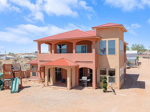 Welcome to this magnificent custom home in the Rio Rancho Estates. This home features 4 bedrooms, 3 full baths, and 2 car garage. This beautiful home has an attached GUEST HOUSE/CASITA! Main home has 2 bedrooms on bottom floor. Master and 4th bedroom on 2nd floor both with its own full bath. GUEST HOME has 2 bedrooms, one full bath, kitchen and living area that all on a half acre land perfect to store your RV or ATVs.PROPERTY DOES NOT HAVE CITY WATER OR WELL. ALL PLUMPING WORK IS DONE AND THERE IS RUNNING WATER, OWNER HAULS WATER TO THE PROPERTY FROM RIO RANCHO WATER DEPARTMENT CITY WELL WHICH IS TWO STREETS AWAY FROM. PROPERTY Home is sold in AS IS condition. Schedule your showing today!