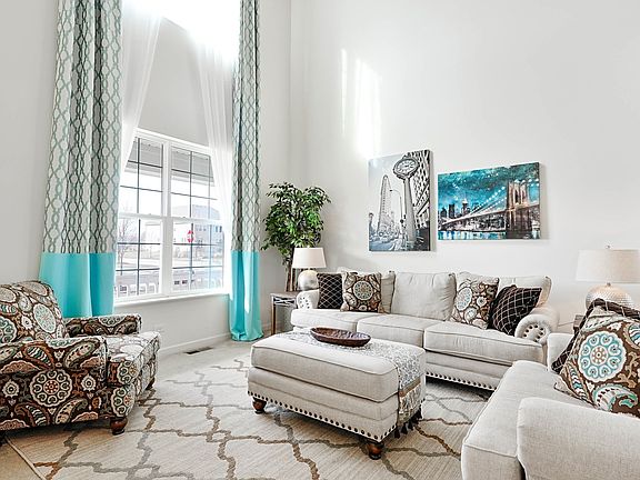 Be prepared to impressed. A grand open floor plan concept with large room sizes throughout. Your first step in the door and you are greeted by a soaring 2 story Foyer and Living Room. Natural light flows through this home. The dramatic open Staircase floats up to the large loft with Built-In Bookcases, a perfect place to relax with a good book. The Living and Dining Rooms are adjacent, which is perfect for entertaining. The spacious Family Room is a great daily place to unwind. The Eat-In Kitchen has lots of countertop space with an Island, 42" Cabinets, Stainless Steel Appliances and a Pantry. Need to run upstairs quick, the back Staircase is right there, no need to go to the front of the house. Working at home these days or need a quiet place to study, there is a spacious first floor Den with a closet, so it could double as a guest bedroom as well. The Master Bedroom Suite will be a retreat as you wrap up your day. Wait until you see the Private Master Bath and large Walk-in Closet. Each of the other 3 Bedrooms are a good size as well. The unfinished full Basement is a deep pour with ceiling height that is 9 ft., plenty of room for storage or finishing off someday. 3 Car Garage is a nice bonus. Adorable front porch will be nice to enjoy on those warm sunny days.