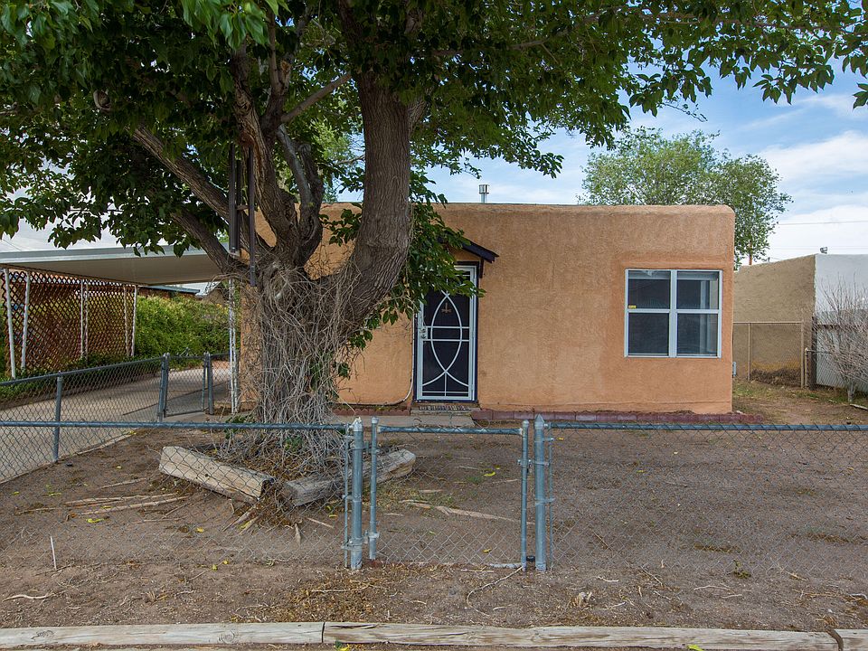 Awesome location, location, location! Close to the Rio Grande Nature Center, easy access to shopping, restaurants and freeway. Lovely light filled Pueblo Bungalow with hardwood floors, a large office that can be used as second bedroom, walk in closet, built in storage and more. Dedicated laundry room off the eat in kitchen. Beautiful xeriscaped backyard with fruit trees. Storage shed and additional workshop with electric and covered porch. Mini splits and window unit provide heating and cooling throughout.