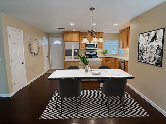 Remodeled and Stunningly updated home, centrally located, custom cabinetry with beautiful quartz counters, stainless steel appliances, wood floors adorn this fabulous home with an open floor plan. The large kitchen features an island and pantry closet. The dining area and spacious living room lead to a wonderful backyard, fenced, with lush trees, patio and pergola. The oversized owner's suite has an enormous walk in closet perfectly appointed for clothes galore and full bathroom, 2 large bedrooms accommodate bedroom furniture plus desk. Separate laundry room has easy access to the finished garage. The big backyard and has a good sized storage shed. Enjoy walking or biking along the nearby American River trail or shopping in the many close by locations. A spectacular layout makes this home a best buy!