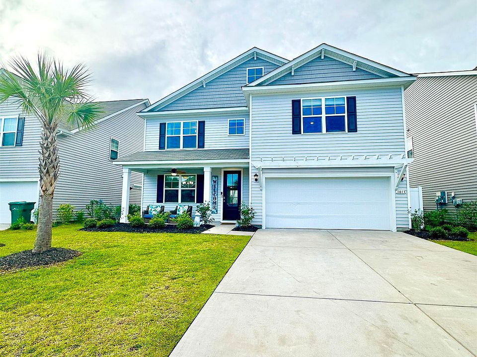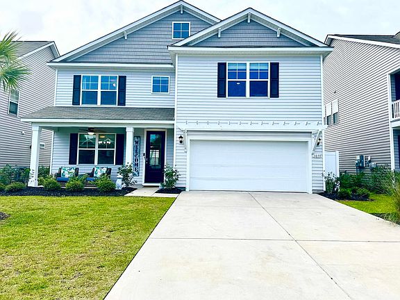 This 5 bedroom 3.5 bath Tillman floor plan home is located in the Parks, a new natural gas community of Carolina Forest. The open living room flows to the rest of the first floor, with wide plank laminate wood flooring throughout the dining room, kitchen, living room, and powder room. Stunning features include granite countertops, stainless steel appliances with a gas range, and an oversized island in the kitchen. The luxurious master suite is conveniently located on the first floor and features a spacious walk-in closet and ensuite bathroom with double vanity and 5 foot shower. Upstairs, there is an oversized versatile loft area, four more large bedrooms, two full bathrooms, and a laundry room. The owner has upgraded the home throughout with ceiling fans and beautiful chandeliers. The backyard features a large fenced yard and spacious patio for your kids and pets to play in! This prime location has everything you dream of--- just minutes from the beach, Broadway at the Beach, Costco, Walmart, the Market Commons, Coastal Grand Mall, many golf courses, numerous restaurants, the Carolina Forest library, community center and large children's activity center are just a golf cart ride away! Excellent Carolina Forest school district such as Blue Award Elementary school and Ten Oaks Middle School. This home is equipped with the industry-leading smart home technology suite that allows you to control the thermostat, front door lights and locks, and video doorbell from your smartphone or Alexa voice commands.