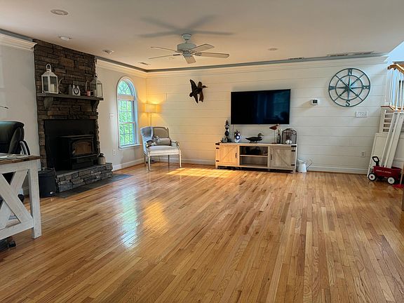 This home is located in a quiet, water oriented community. The property consists of 3 bedrooms, 2 and half baths, has a rear deck, a front porch, an oversized 2 car garage and a driveway that fits 9 cars. Master bath has a walk-in closet. This home sits on approx .75 acres, backing up to woods. Creek access is a short walk across the lawn to enjoy kayaks and canoes, leading to the Chesapeake Bay. The neighborhood has a private marina, or take a 5 min drive to Rocky Point state park for public boat ramp access. This home will be available for rent September 1st. No smoking inside. Dogs are allowed with a $30/mo fee per pet. Tenant pays utilities.