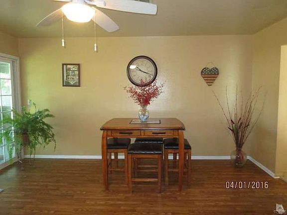 Admire the beautiful view of the hills as you pull up to this wonderful 4 bedroom 2 bath home. Great warm colors in the living room. Open kitchen with great eating area and sliding door to the backyard. Master bedroom has wall to wall closet and updated bathroom. Hall bathroom has been updated also. Great family home with fabulous floor plan. Air conditioning. Huge covered patio off of the kitchen. Backyard has patio and grassy area and small shed. 2 car garage has direct access to the house, as well as an additional door by the front door. Additional RV parking to the left of the garage and possible additional parking beyond the RV gate. Close by Hillside Jr. High School.