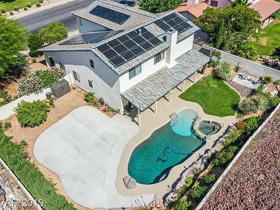 BEAUTIFULLY REMODELED 5 BED/3BATH HOME W/BEACH ENTRY PEBBLE-TEC POOL AND SPA. OPEN KITCHEN WITH NEWER STAINLESS STEEL APPLIANCES. KITCHEN HAS CUSTOM EUROPEAN CABINETRY WITH QUARTZ COUNTERTOPS. FAMILY ROOM WITH MODERN FIREPLACE AND WET BAR.BOTH A/C UNITS LESS THAN 2YEARS OLD. MASTER SUITE HAS BALCONY W/STRIP VIEWS. LARGE LOT OVER 10,000 SQFT RV PARKING, COVERED PATIO, AND PORCH. SOLAR PANELS ARE OWNED NOT LEASED!!