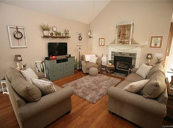 What a wonderful home on a cul-de-sac in this charming small neighborhood in Northwest Cabarrus. So many gorgeous upgrades in this home with such a great floor plan. Volume ceiling in the gorgeous open greatroom and fireplace with gas logs, split bedrooms and Master Bedroom off of the back of the house has gorgeous views of the wooded lot, cathedral ceiling and a lovely master bath with large shower, granite and glass block window, his and her sinks and closets. Neutral decor throughout and a large eating area just off of the recently updated kitchen with all new stainless appliances and granite countertops. The yard is beautifully landscaped and offers even gorgeous side yard landscaping and all offering so much privacy. Three big bonuses are the two year old Trane air unit, the basement for storing lots of items and Hardwood flooring!