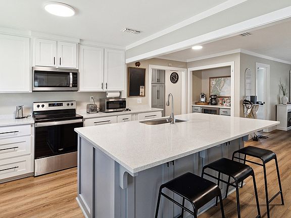 Welcome to your coastal paradise in the charming fishing community of Bellville! This move-in ready gem boasts 4 bedrooms, 2 baths, and exclusive access to the community dock, perfect for those who love the water. Nestled on a desirable corner lot, this home is just a stone's throw away from the public boat ramp and Stafford community dock, making it a haven for boating enthusiasts. Step inside to discover an inviting open floor plan designed for effortless entertaining. The built-in bar area, complete with a wine cooler, adds a touch of elegance and convenience to your gatherings. Bask in the abundance of natural light streaming through the large picture windows, creating a warm and welcoming atmosphere throughout the home. The well-appointed kitchen features Whirlpool appliances, quartz countertops, and LED lighting, making meal preparation a breeze. LVP flooring adorns the entire home, adding durability and style, while the spacious master bedroom boasts a generous walk-in closet for all your storage needs. With a great laundry/mudroom conveniently located near the back door, keeping things organized has never been easier. For added convenience, the seller is willing to leave the home fully furnished, allowing you to move in and start enjoying coastal living right away. Seller is motivated - Submit all offers.