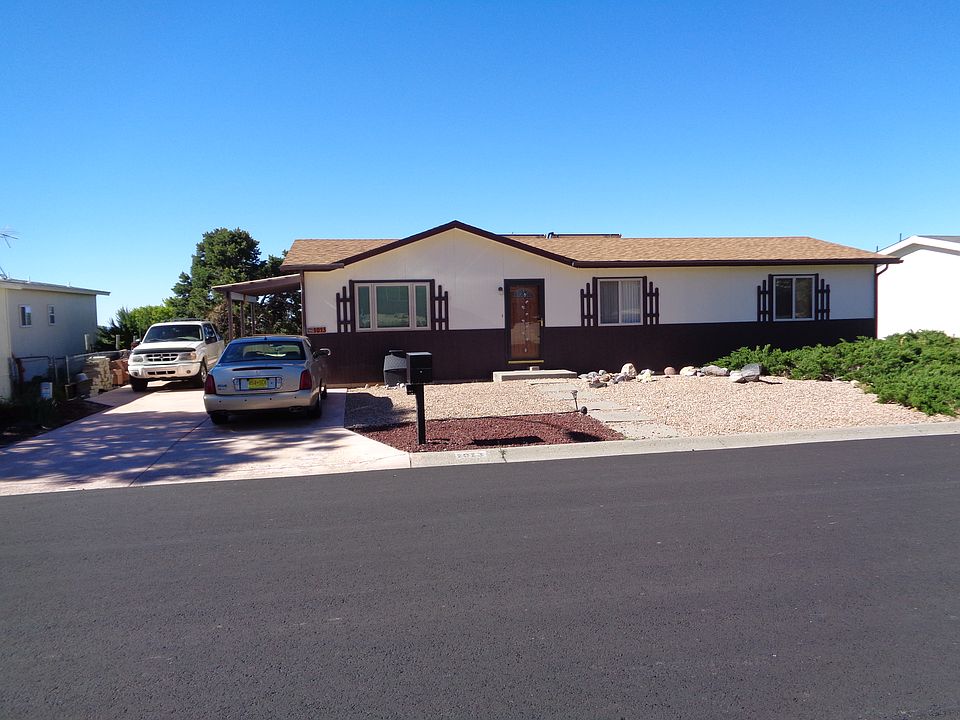 A sweet house with brand new carpeting, all new fresh paint,ceilings and walls, granite countertops in the open kitchen with solid oak cabinets, tons of storage space and entertaining space in the kitchen and living area. Natural light and double pain windows are great features. The bedrooms are nice size and the bathrooms are nicely updated. The side of the house and backyard features lots of room to park and work in the garage area. This is great for hobbies, a gym workout space and storage. This darling home sits on the canyon and is feels really private. This home is on a solid foundation with a crawl space and is avery well built manufactured home. Don't miss such a nice opportunity to own this home at a great price.